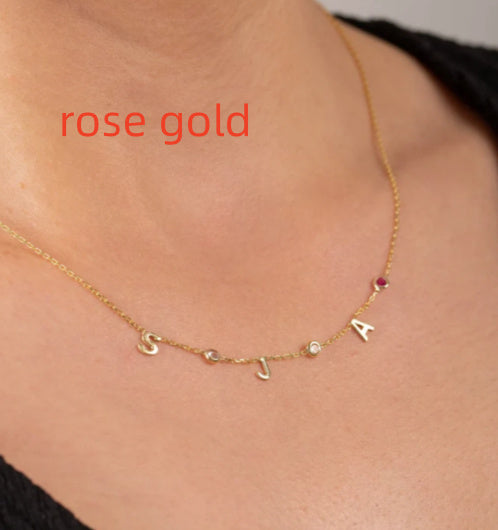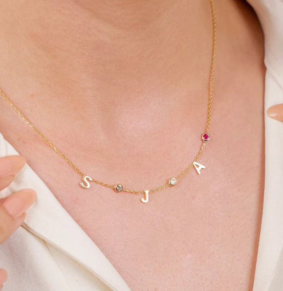 14K Gold Initial Birthstone Stainless Steel Necklace