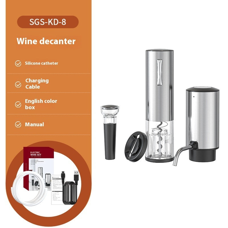Effortlessly aerate and pour your wine with this rechargeable electric wine decanter dispenser. Made from high-quality ABS plastic or stainless steel (model-dependent), it combines modern convenience with classic American style. Designed to open bottles, enhance flavor through aeration, and provide smooth, mess-free pouring—perfect for home use, wine bars, or gifting.