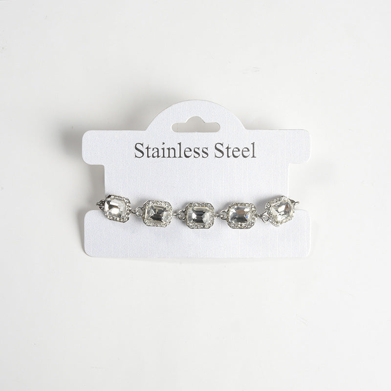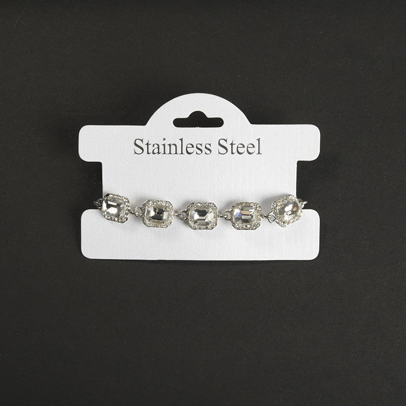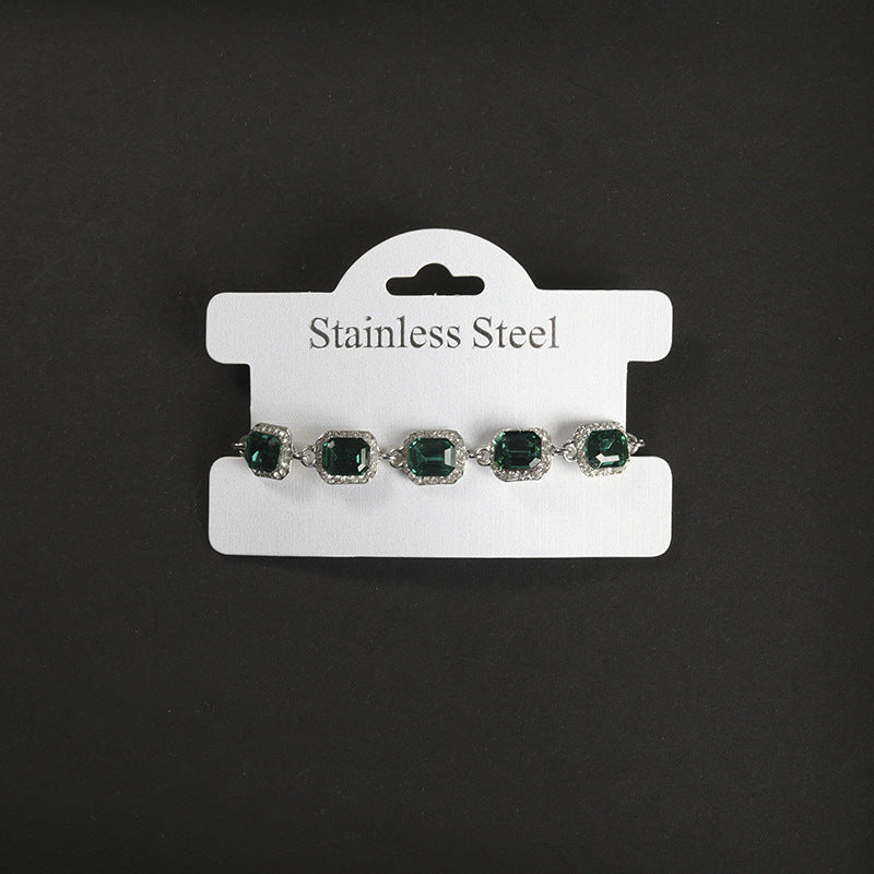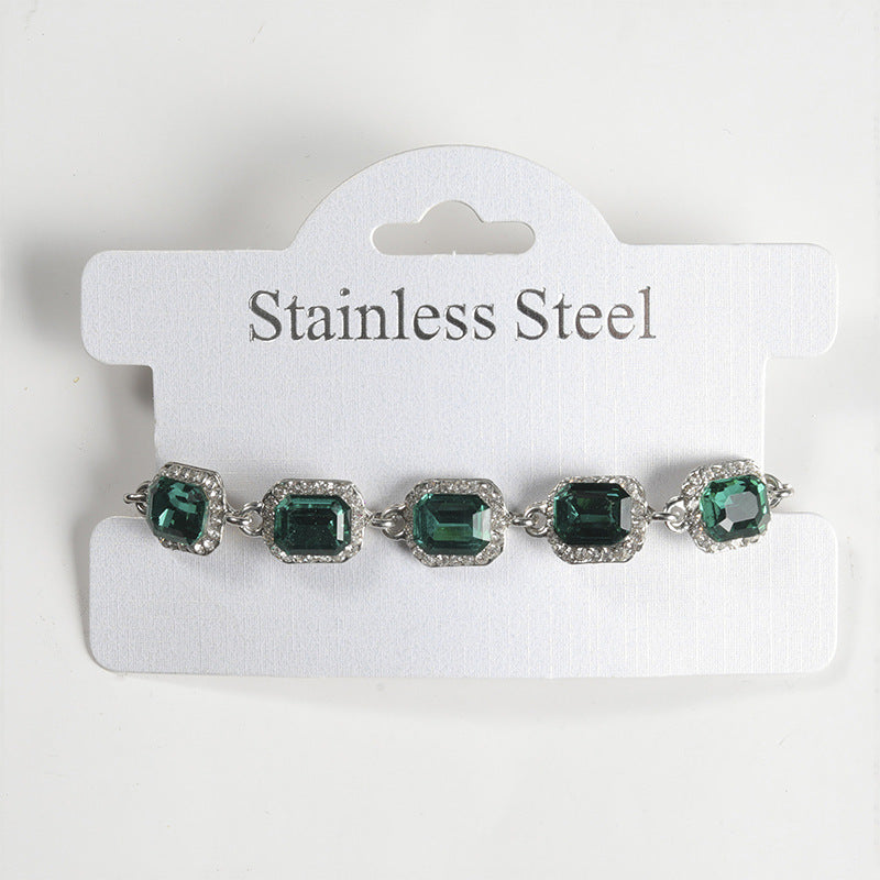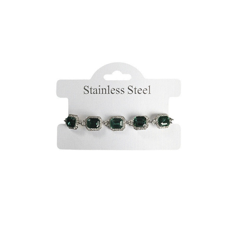 This stunning bracelet features a sleek electroplated alloy construction, adding a touch of elegance and sophistication to any outfit. Available in two beautiful colors, crystal and jade, the bracelet is designed in a diamond shape, making it a timeless piece for both casual and formal occasions. Crafted with high-quality materials, it offers durability and a refined shine. Whether you're dressing up for a special event or adding a stylish touch to your everyday look, this bracelet is sure to complement any style. This electroplated alloy bracelet is designed with a sleek diamond shape, offering a refined and timeless accessory for any occasion. Available in crystal and jade colors, the bracelet adds a beautiful shine to your wrist. The alloy material ensures durability and a lasting shine, making it a perfect addition to your jewelry collection. Whether for a special occasion or everyday wear, this bracelet is a versatile and elegant choice.