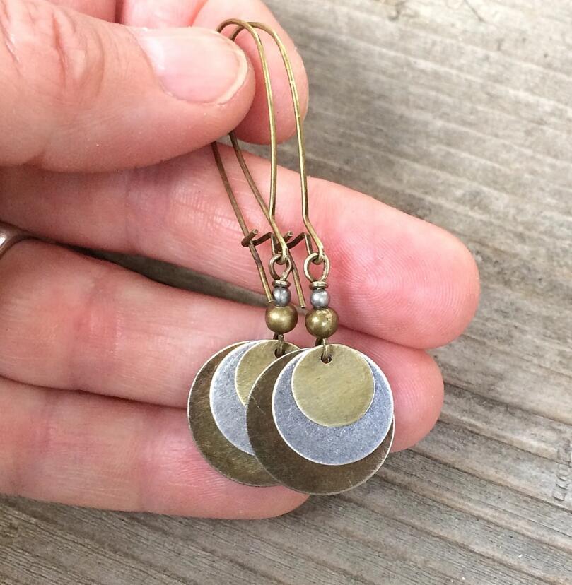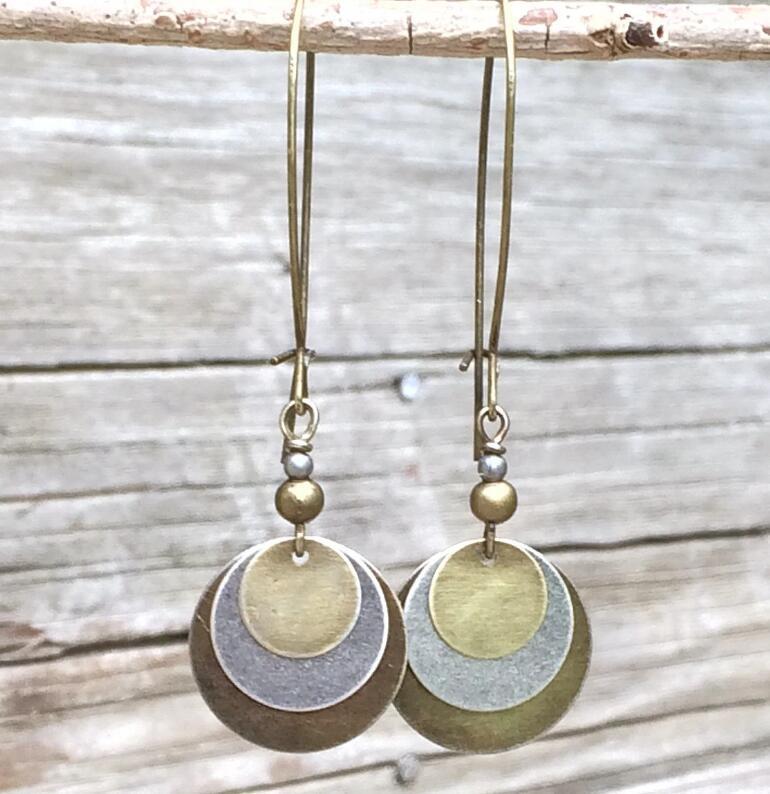 Three-Layer Round Geometric Alloy Earrings – National Style