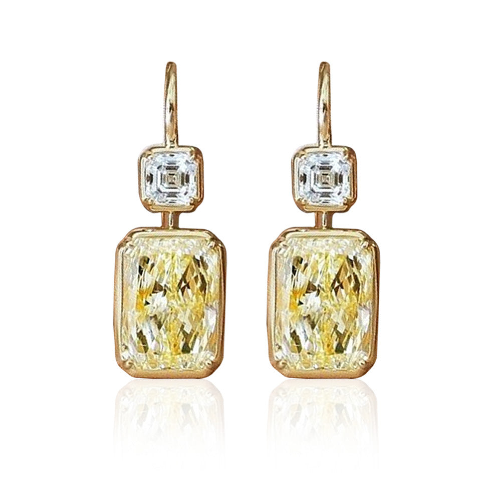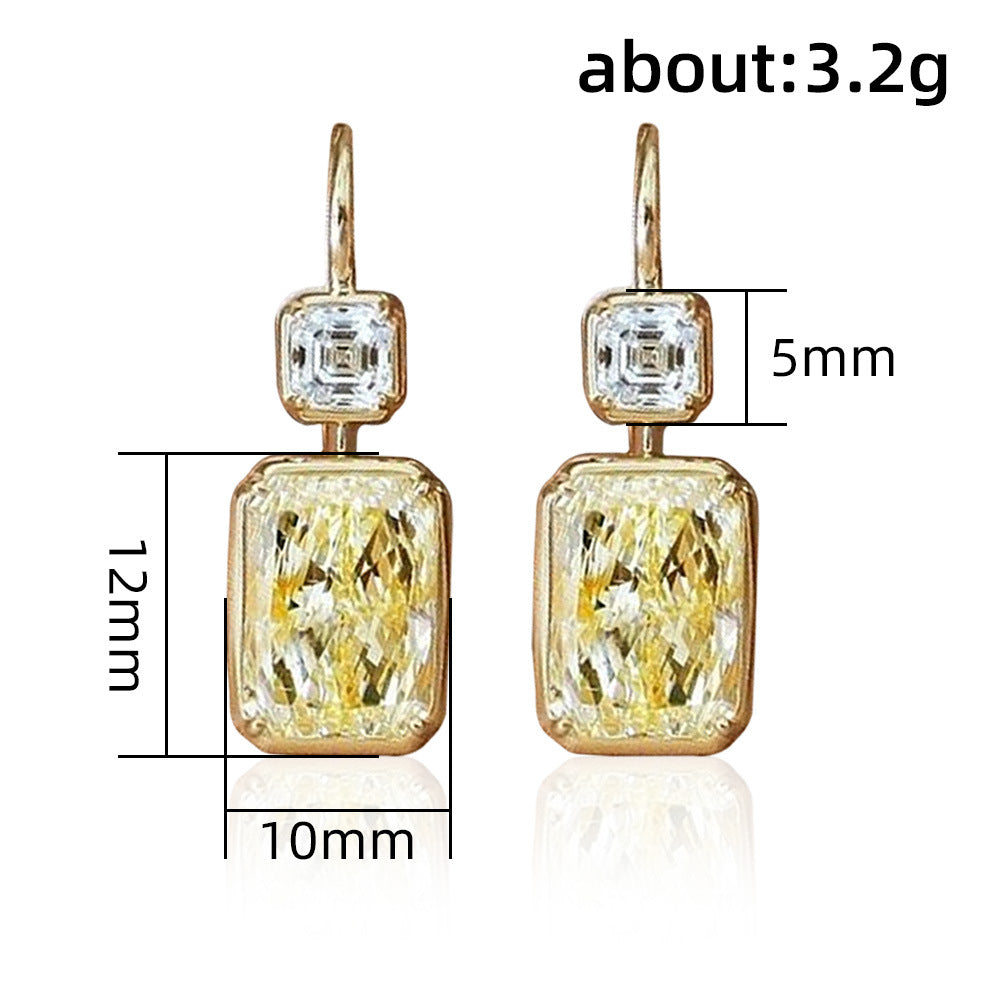 Yellow Diamond Square Zircon Earrings – Geometric Copper Design