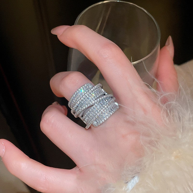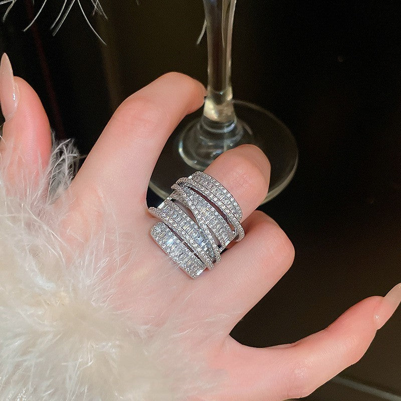 Add a touch of sophistication to your look with this stylish geometric ring, expertly crafted from durable copper and beautifully inlaid with sparkling zircon stones. The sleek silver finish enhances its modern design, making it a versatile accessory suitable for any occasion.